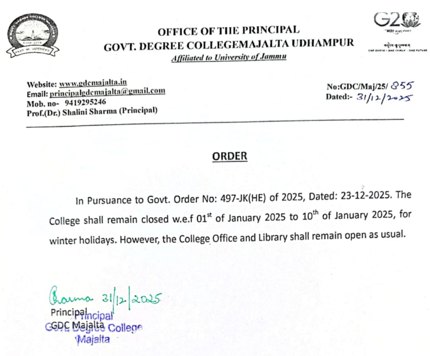 Government Degree College Majalta was established in July 2016 and affiliated to University of Jammu. The vision of Majalta College is to mould the students into responsible citizens with education, advanced knowledge and moral values for a happy, prosperous and vibrant society. Our mission is to uplift the youth by imparting quality education and equip them to cope with the latest requirements through innovative teaching and learning practices.