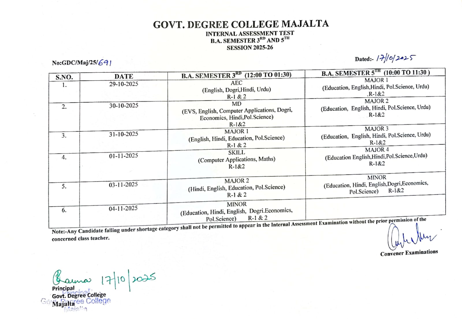 Internal Assessment Date Sheet..Sem 5 and Sem 3.